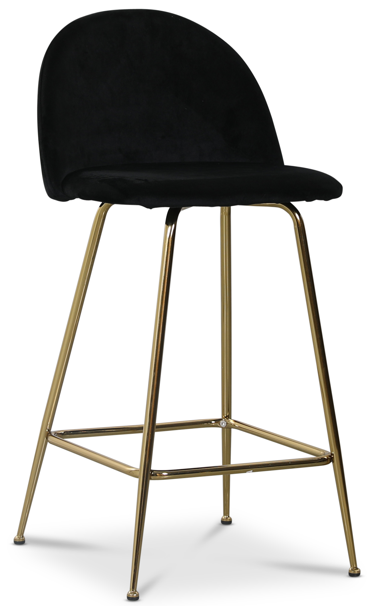 Stilig och modern barstol med sits och dyna i svart sammetstyg. ben i blank mässing.