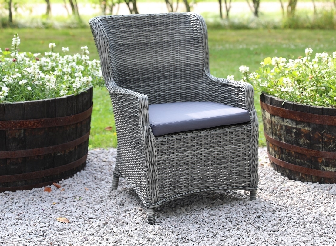 Jacksonville matgrupp i grå konstrotting, stomme av aluminium. Mörkgrå dynor av polyester för god sittkomfort. Bordets toppskiva är i tempererat glas. Matgrupp för familjen och uteplatsen.