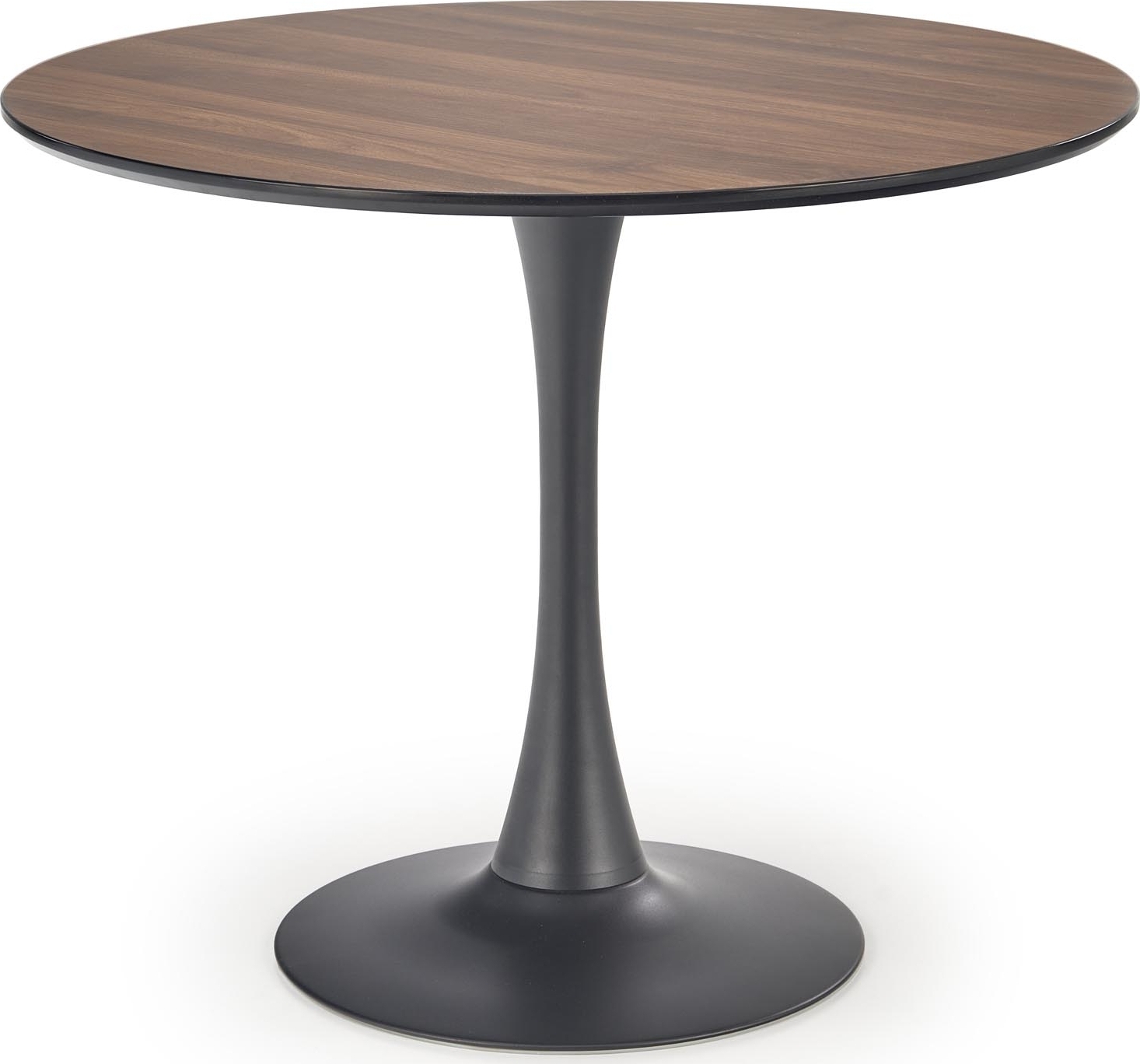 Matgruppen Olmo & Alfred är en stilren och kompakt kombination som förenar modern design med varma, eleganta material. Det runda Olmo matbordet har en bordsskiva i laminerad MDF med vacker valnötsfinish och ett svart pulverlackerat stålunderrede i pelardesign, vilket ger både stabilitet och ett tidlöst uttryck. Den nätta storleken gör bordet perfekt för mindre kök, matplatser eller som ett mysigt frukostbord.